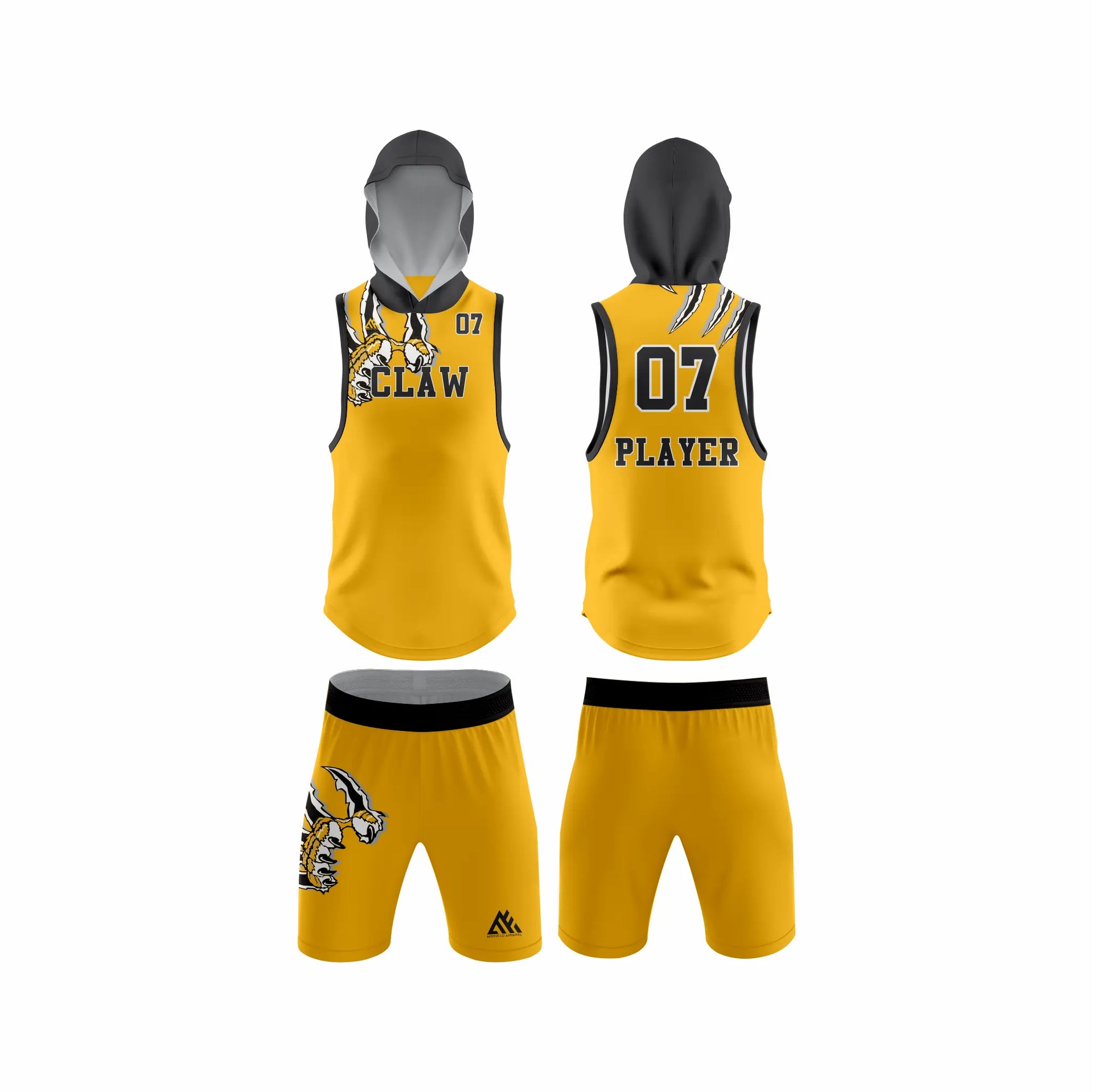 Perfect for youth and adult 7v7 teams, leagues, and tournaments, this uniform is fully customizable with your team logo, names, numbers, and colors. The Claw Yellow set delivers standout style and elite-level performance for serious athletes.