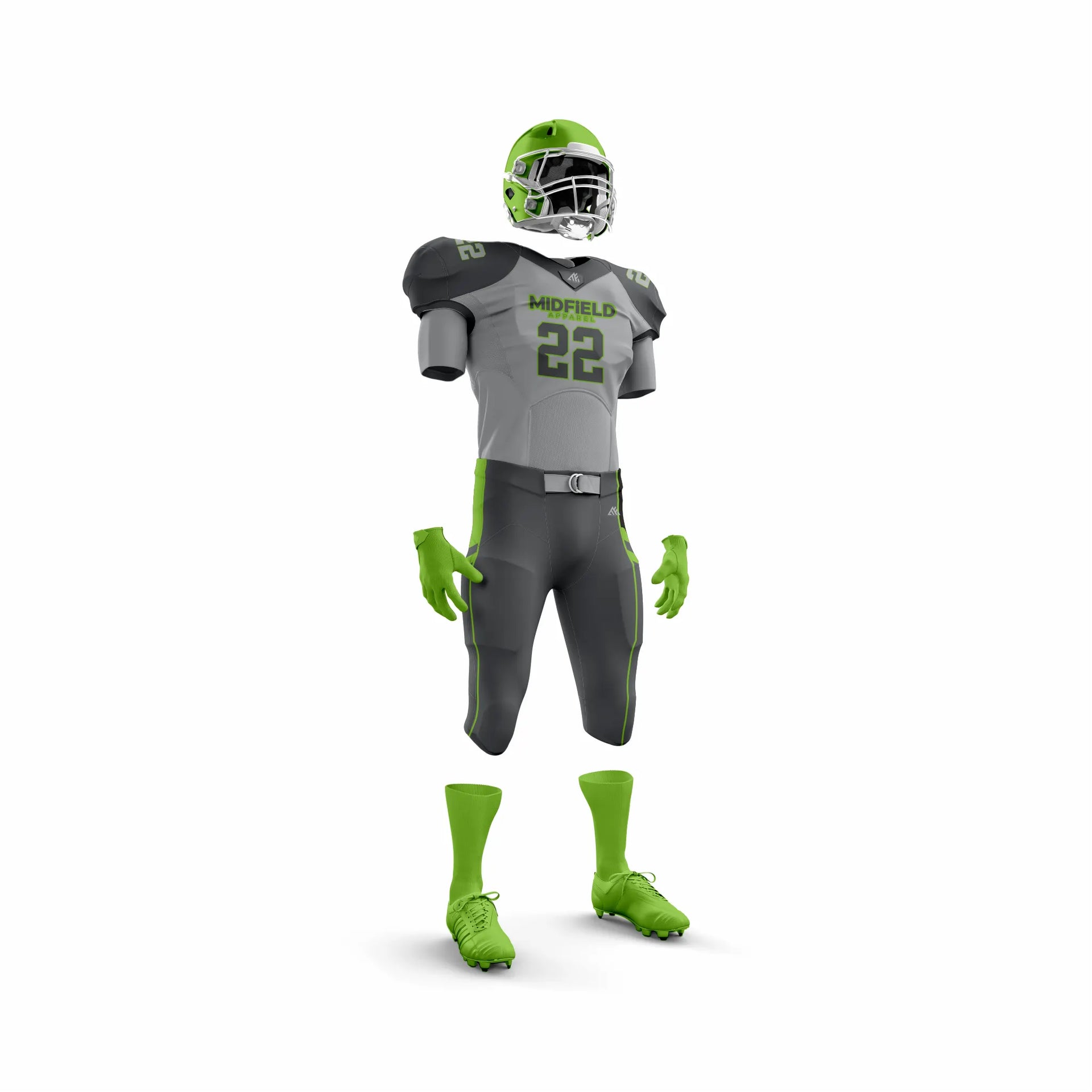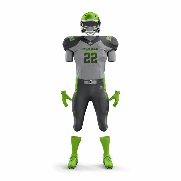 The Midfield Grey American Football Uniform is designed for players who value strength, comfort, and modern style. Made with moisture-wicking, breathable polyester, this uniform keeps athletes cool and dry in every quarter. Reinforced stitching ensures lasting durability, while the sleek grey colorway gives your team a professional and commanding look on the field.